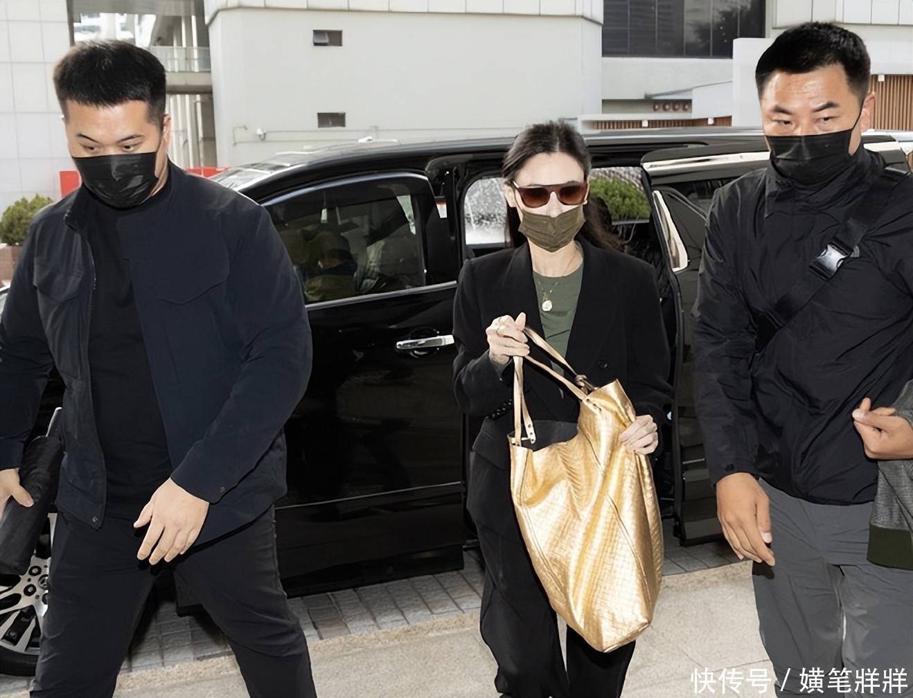 她以四名保镖及助理随行护驾,出场阵势十足,神情镇定自若,展现出极强的心理准备和应对手段。